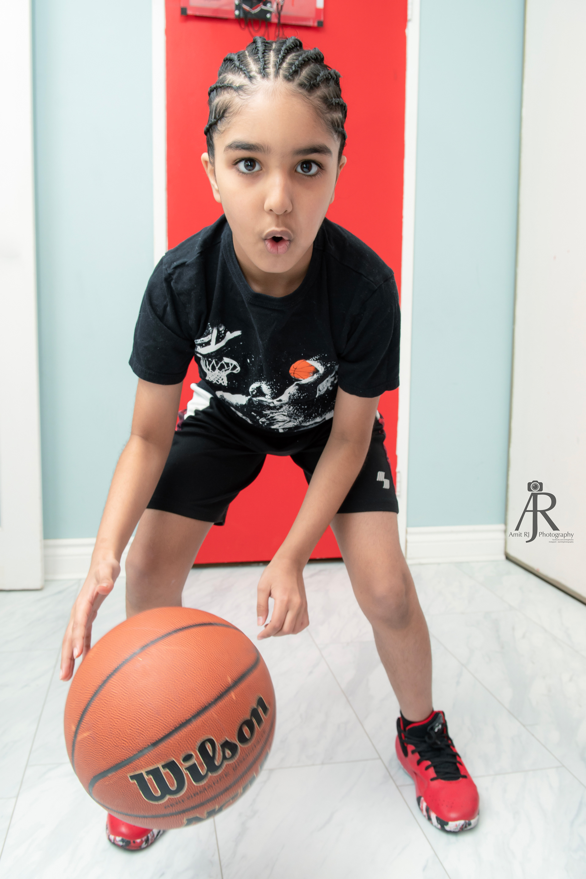 Feb 2022: My son is not only an avid basketball player, but likes to keep up with the associated fashion. This is quick portrait I made after he got his first corn rows
